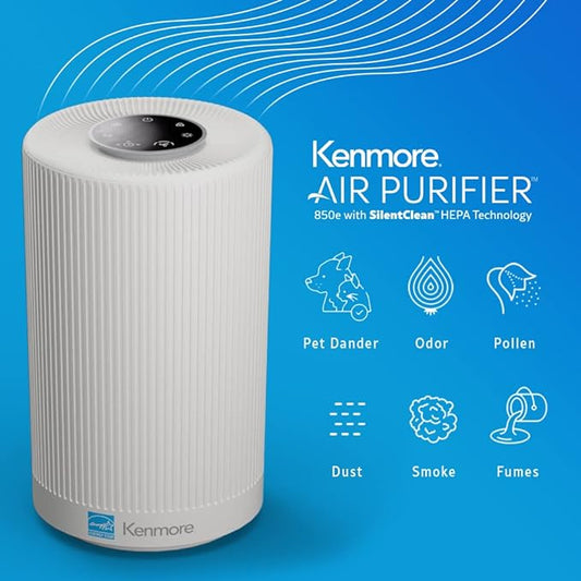 Kenmore PM1005 Air Purifier with H13 True HEPA Filter, Covers Up to 850 Sq.Foot, 25db SilentClean 3-Stage HEPA Filtration System for Office & Bedroom