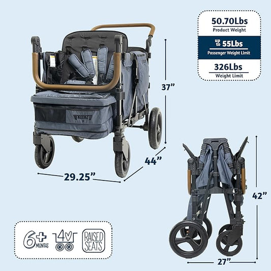 Keenz XC+ EVO - Luxury Comfort Stroller Wagon | Foldable 4 Passenger Quad Seater with Adjustable Canopy | Steel Blue