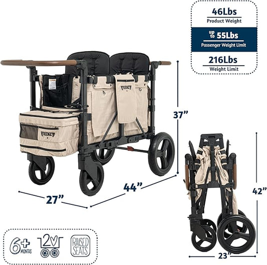 Keenz XC+ EVO- Luxury 4 Passenger Stroller Wagon for Kids | Foldable 4 Passenger Quad Seater with Adjustable Canopy | Mocha