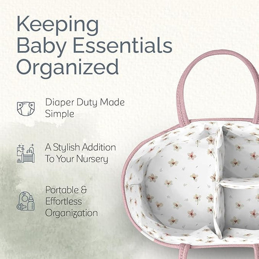 KiddyCare Diaper Caddy Organizer for Baby Nursery Basket with Handle Lid Nursing Caddy with Changing Table Organizer Cart Newborn Caddy Rosy (Floral Print) X-Large
