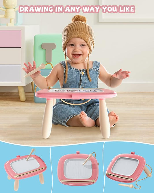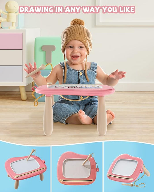 Kikapabi Toddler Magnetic Drawing Board - 1st Birthday Gifts for 1 2 3 Year Old Girls & Boys, Learning Doodle Board, Educational Toys for Baby (Pink)