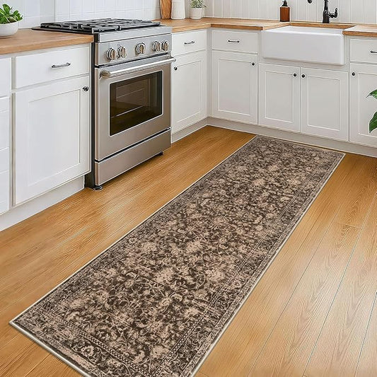 KILOCOCO Hallway Runner 2x6 Rug Runner Printed Vintage Floral Washable Kitchen Runners Non-Slip Rubber Backed Runners for Hallways Laundry Room Distressed Boho Rugs for Entryway Bedroom, Beige/Brown