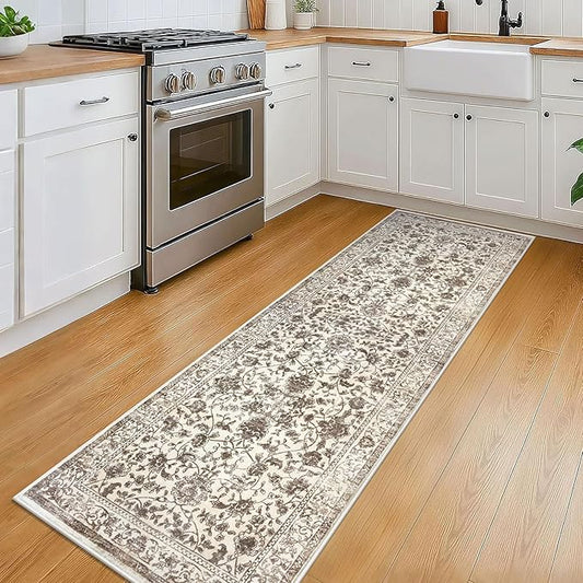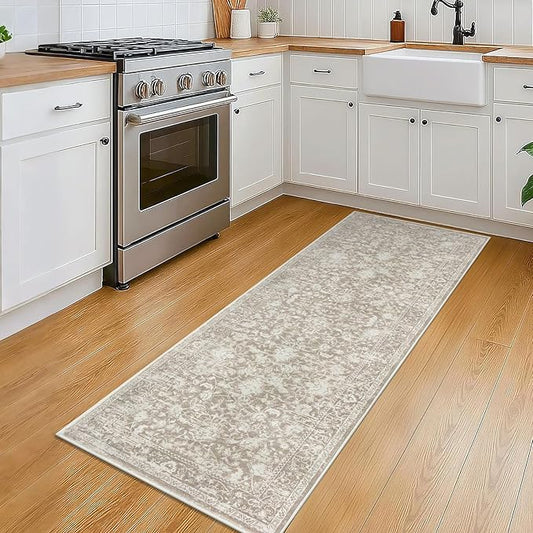 KILOCOCO Hallway Runner 2x5 Kitchen Runner Rug Printed Vintage Floral Washable Non-Slip Runners for Hallways Laundry Room Rugs Distressed Boho Rug for Bedroom, Beige