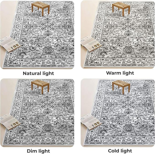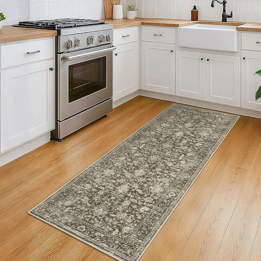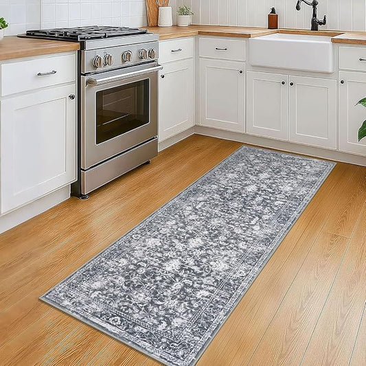 KILOCOCO Hallway Runner 2x5 Kitchen Runner Rug Printed Vintage Floral Washable Non-Slip Runners for Hallways Laundry Room Rugs Distressed Boho Rug Runners for Bedroom, Grey