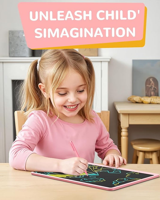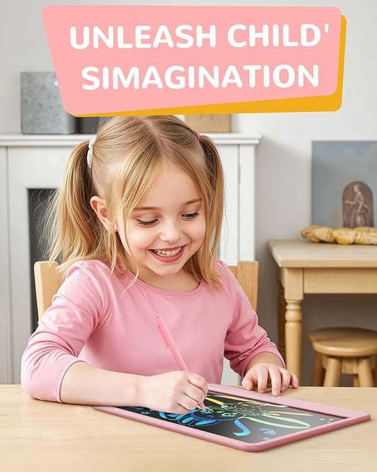 KOKODI LCD Writing Tablet, 12 Inch Colorful Toddler Doodle Board Drawing Tablet, Erasable Reusable Electronic Drawing Pads, Educational and Learning Toy for 3-6 Years Old Boy and Girls(Pink)