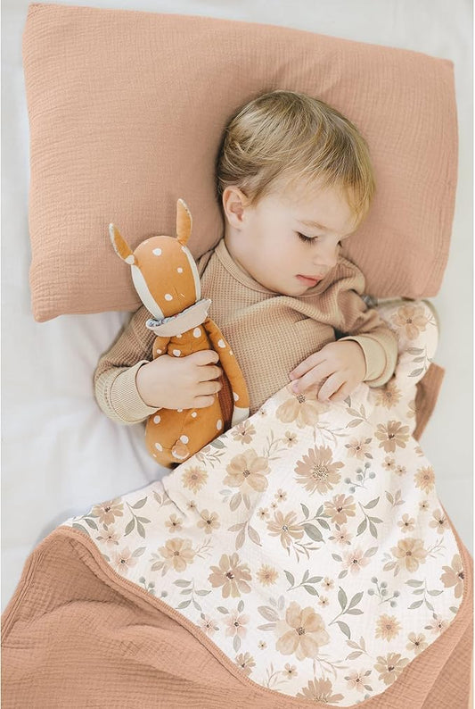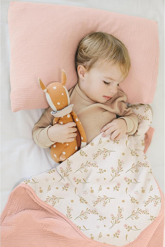 Konssy Muslin Baby Blankets for Girls Boys, 100% Cotton Crib Blanket for Infant Toddler, Super Soft and Lightweight Nursery Swaddling Wrap 40"x36" (Flourish)