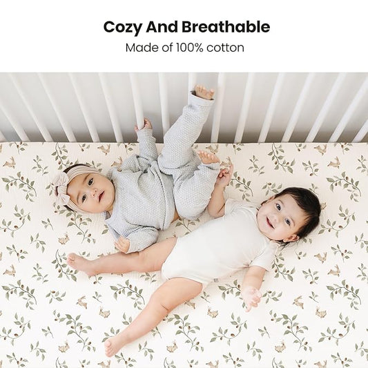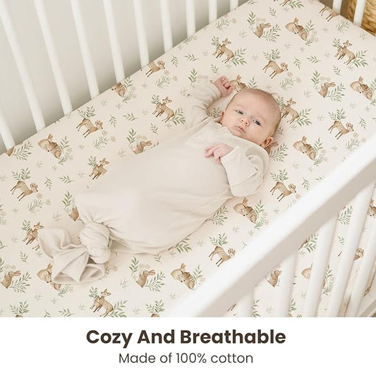 Konssy Muslin Crib Sheets 2 PCS, 100% Cotton Baby Crib Sheets for Standard Crib Mattress (28"x 52"), Soft and Breathable for Boys, Girls (Woodland,Sage)