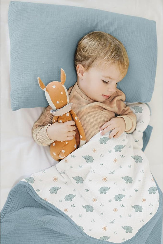 Konssy Muslin Baby Blankets for Girls Boys, 100% Cotton Crib Blanket for Baby Infant Toddler, Super Soft and Lightweight Nursery Blankets 40"x36" (Elephant)