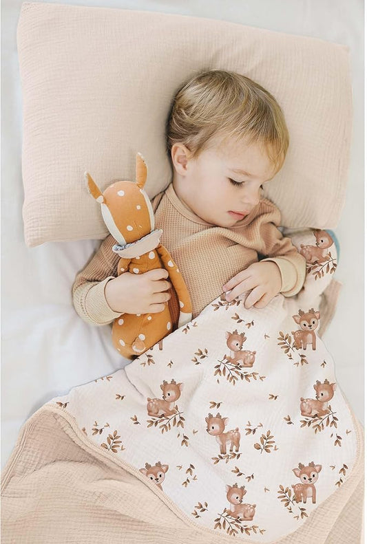 Konssy Muslin Baby Blankets for Girls Boys, 100% Cotton Crib Blanket for Baby Infant Toddler, Super Soft and Lightweight Nursery Blankets 40"x36" (Deer)