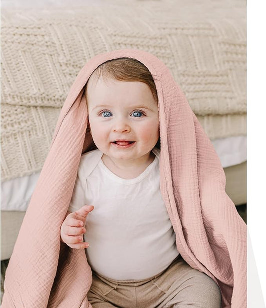 Konssy Muslin Baby Blankets for Girls Boys, 100% Cotton Crib Blanket for Infant Toddler, Super Soft and Lightweight Nursery Swaddling Wrap 40"x36" (Pink)