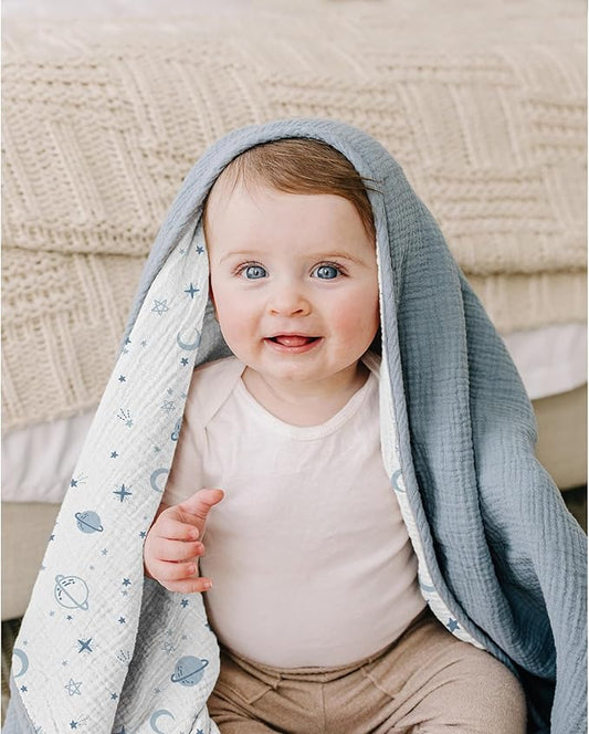Konssy Muslin Baby Blankets for Girls Boys, 100% Cotton Crib Blanket for Infant Toddler, Super Soft and Lightweight Nursery Swaddling Wrap 40"x36" (Star)