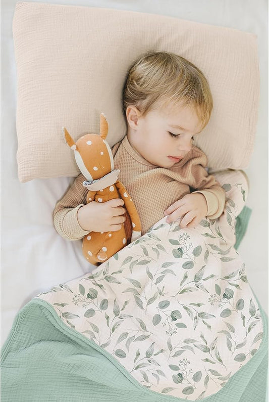 Konssy Muslin Baby Blankets for Girls Boys, 100% Cotton Crib Blanket for Infant Toddler, Super Soft and Lightweight Nursery Swaddling Wrap 40"x36" (Green Leaves)