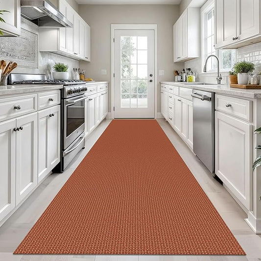 KOZYFLY Extra Long Runners for Hallways 3x18 ft Washable Kitchen Runner Non Slip Rubber Backed Hallway Rug Cotton Entryway Runner Rug Floor Carpet for Indoor Hall, Kitchen, Stair, Orange/Tan