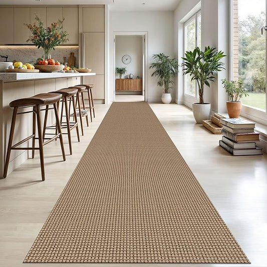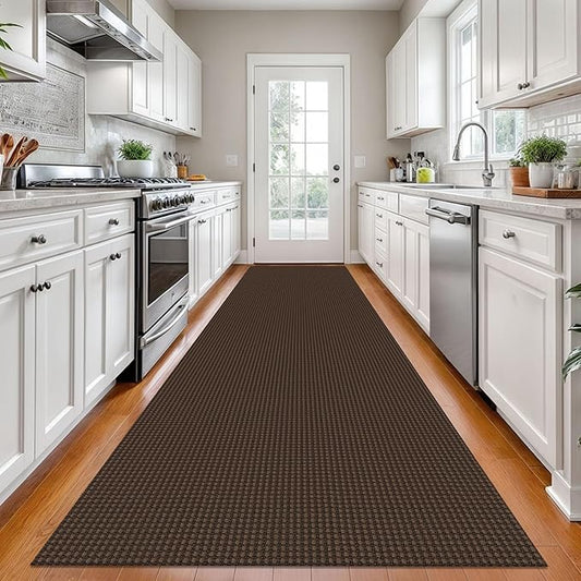 KOZYFLY Extra Long Runners for Hallways 3x20 ft Washable Kitchen Runner Non Slip Rubber Backed Hallway Rug Cotton Entryway Runner Rug Floor Carpet for Indoor Hall, Kitchen, Stair, Reddish Brown/Coffee