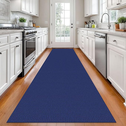 KOZYFLY Long Runners for Hallways 2.6x12 ft Washable Kitchen Runner Non Slip Rubber Backed Hallway Rugs Cotton Entryway Runner Rug Floor Carpet for Indoor Hall, Backdoor, Kitchen, Royal Blue/Navy