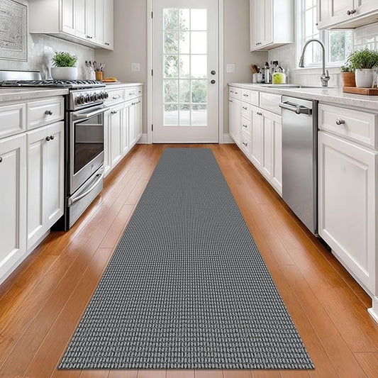 KOZYFLY Extra Long Runners for Hallways 3x20 ft Washable Kitchen Runner Non Slip Rubber Backed Hallway Rug Cotton Entryway Runner Rug Floor Carpet for Indoor Hall, Kitchen, Stair, Grey/Dark Grey