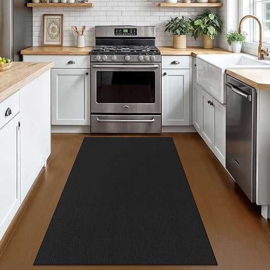 KOZYFLY Extra Long Runners for Hallways 3x18 ft Washable Kitchen Runner Non Slip Rubber Backed Hallway Rug Cotton Entryway Runner Rug Floor Carpet for Indoor Hall, Kitchen, Stair, Black/Dark Grey