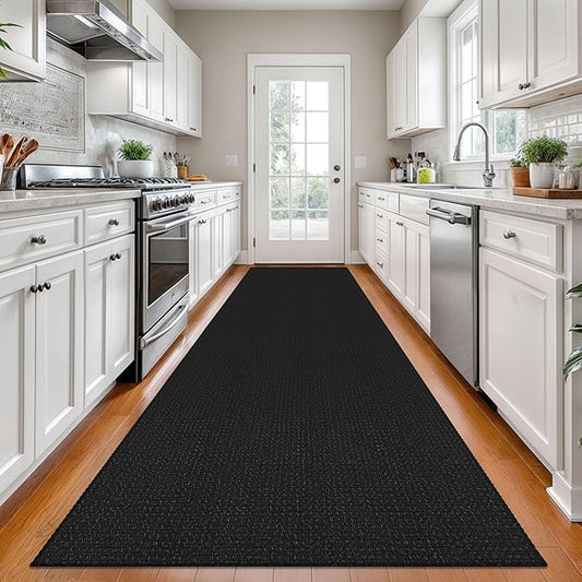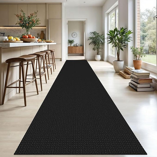 KOZYFLY Extra Long Runners for Hallways 3x20 ft Washable Kitchen Runner Non Slip Rubber Backed Hallway Rug Cotton Entryway Runner Rug Floor Carpet for Indoor Hall, Kitchen, Stair, Black/Dark Grey