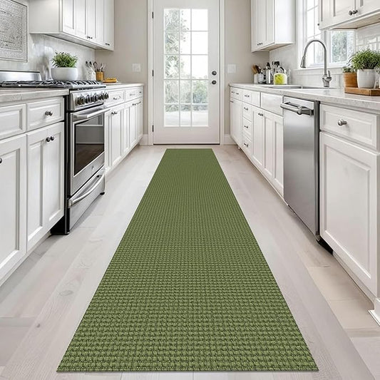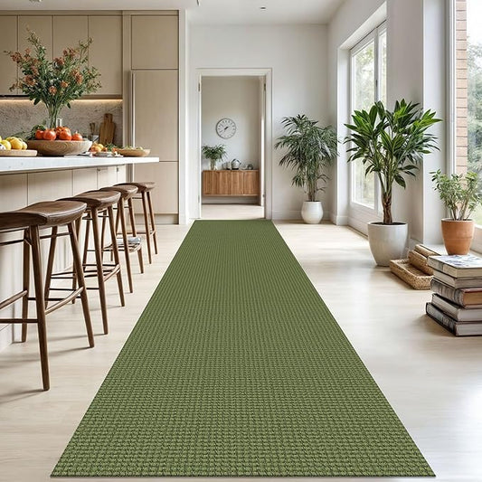 KOZYFLY Extra Long Runners for Hallways 3x20 ft Washable Kitchen Runner Non Slip Rubber Backed Hallway Rug Cotton Entryway Runner Rug Floor Carpet for Indoor Hall, Kitchen, Olive Green/Earthy Green