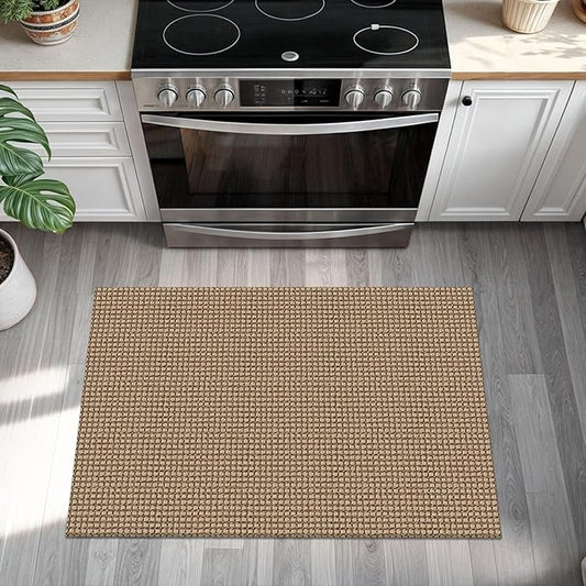 KOZYFLY Indoor Door Mat 2x3 ft Small Area Rugs Washable Front Door Mat Non Slip Rubber Backed Entryway Rug Cotton Entrance Doormat for Front Porch Bathroom Kitchen Bedroom, Tan/Orange/Brown