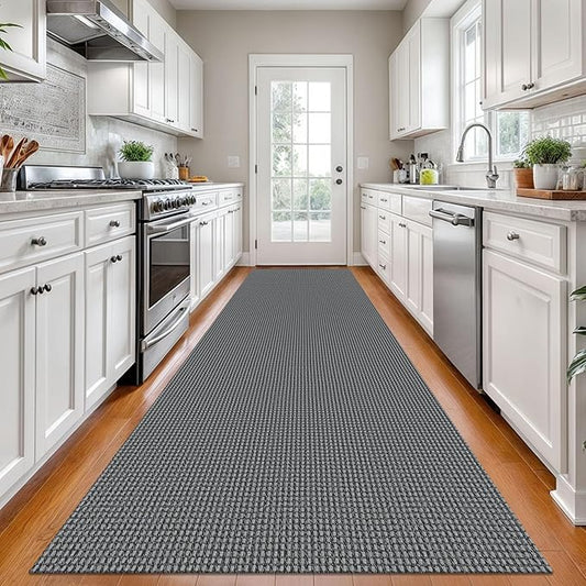 KOZYFLY Long Runners for Hallways 3x12 ft Washable Kitchen Runner Non Slip Rubber Backed Hallway Rugs Cotton Entryway Runner Rug Floor Carpet for Indoor Hall, Backdoor, Kitchen, Grey/Dark Grey