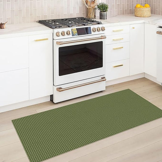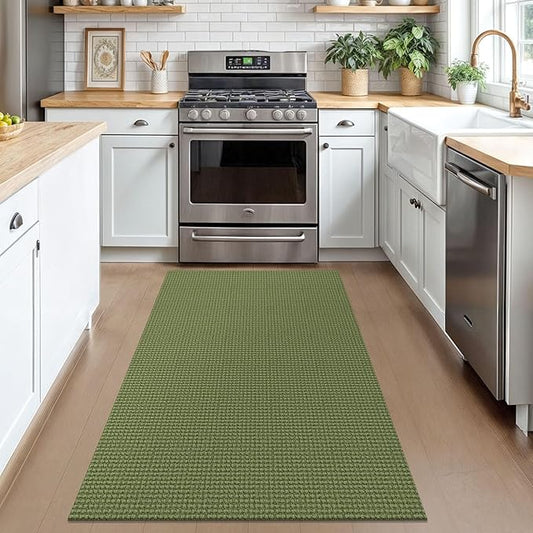 KOZYFLY Runners for Hallways 2x5 ft Washable Kitchen Runner Non Slip Rubber Backed Hall Runners Cotton Entryway Runner Rugs Floor Carpet for Indoor Backdoor Bedroom Kitchen, Olive Green/Earthy Green