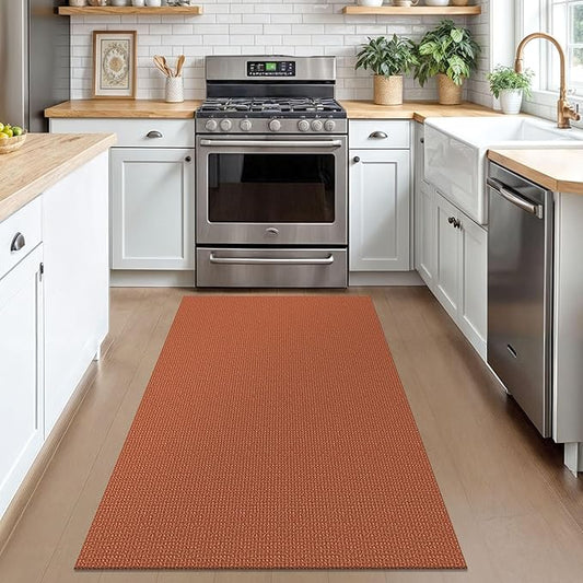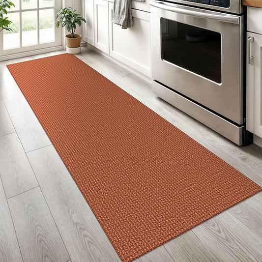KOZYFLY Runners for Hallways 2x10 ft Washable Kitchen Runner Non Slip Rubber Backed Hallway Rugs Cotton Entryway Runner Rug Floor Carpet for Indoor Hall, Backdoor, Kitchen, Orange/Tan