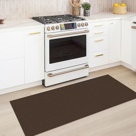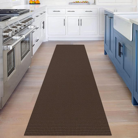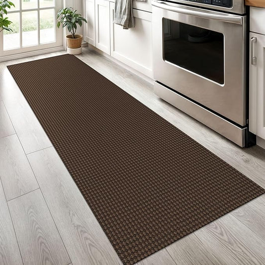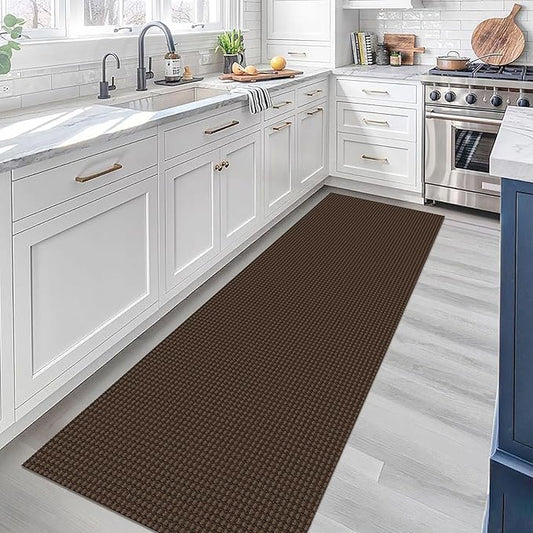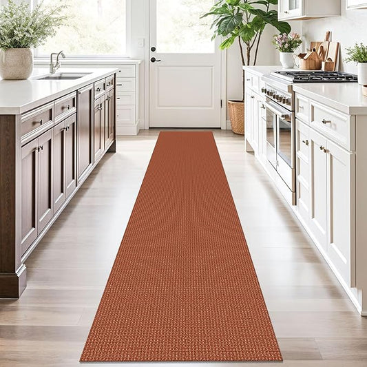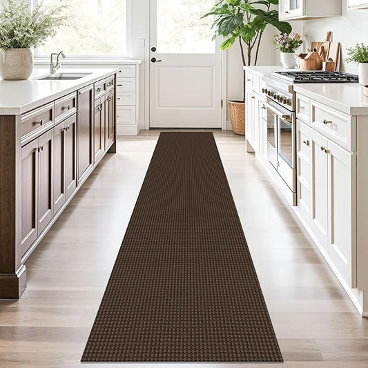 KOZYFLY Runners for Hallways 2.6x10 ft Washable Kitchen Runner Non Slip Rubber Backed Hallway Rugs Cotton Entryway Runner Rug Floor Carpet for Indoor Hall, Backdoor, Kitchen, Reddish Brown/Coffee