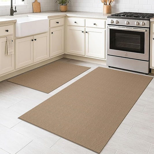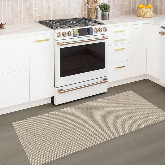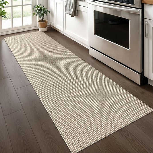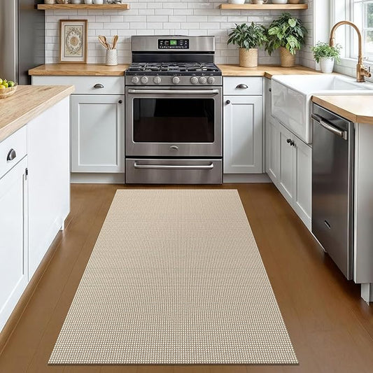 KOZYFLY Runners for Hallways 2x5 ft Washable Kitchen Runner Non Slip Rubber Backed Hall Runners Cotton Entryway Runner Rugs Floor Carpet for Indoor Backdoor Bedroom Kitchen, Ivory/Khaki