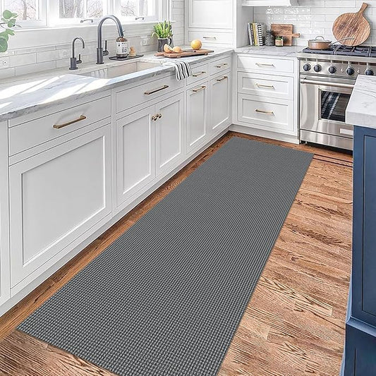 KOZYFLY Runners for Hallways 2x10 ft Washable Kitchen Runner Non Slip Rubber Backed Hallway Rugs Cotton Entryway Runner Rug Floor Carpet for Indoor Hall, Backdoor, Kitchen, Grey/Dark Grey