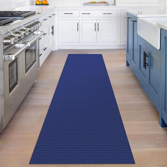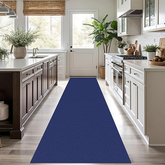 KOZYFLY Runners for Hallways 2.6x10 ft Washable Kitchen Runner Non Slip Rubber Backed Hallway Rugs Cotton Entryway Runner Rug Floor Carpet for Indoor Hall, Backdoor, Kitchen, Royal Blue/Navy