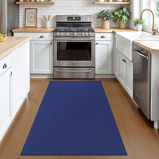 KOZYFLY Rugs for Entryway 3x5 ft Washable Area Rug Non Slip Rubber Backed Entry Rug Woven Indoor Door Mat Cotton Kitchen Rugs Floor Carpet for Entryway, Foyer, Backdoor, Royal Blue/Navy