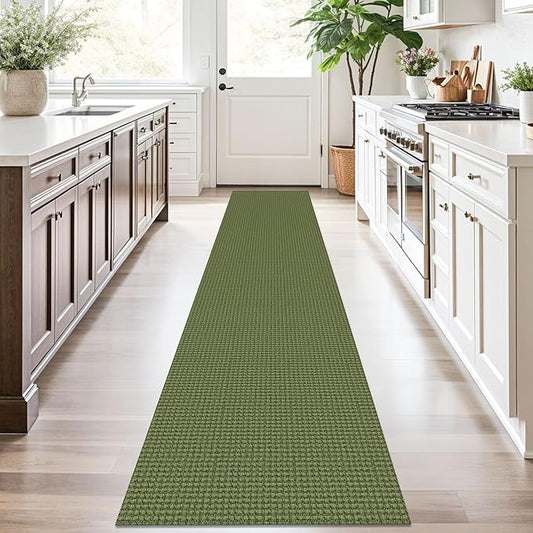 KOZYFLY Runners for Hallways 2x7 ft Washable Kitchen Runner Non Slip Rubber Backed Hall Runners Cotton Entryway Runner Rugs Floor Carpet for Indoor Backdoor Bedroom Kitchen, Olive Green/Earthy Green