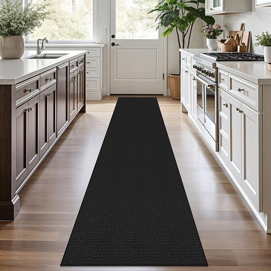 KOZYFLY Runners for Hallways 2x10 ft Washable Kitchen Runner Non Slip Rubber Backed Hallway Rugs Cotton Entryway Runner Rug Floor Carpet for Indoor Hall, Backdoor, Kitchen, Black/Dark Grey