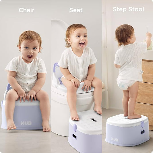 KÜB 3-in-1 Potty Training Toilet (Chair, Seat, Step Stool) - 9 CM Splash Guard, One-Click Assembly, Easy to Clean - Versatile Toddler Potty Trainer for Boy Girl - Purple