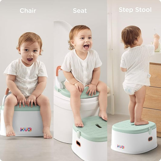 KÜB 3-in-1 Potty Training Toilet (Chair, Seat, Step Stool) - 9 CM Splash Guard, One-Click Assembly, Easy to Clean - Versatile Toddler Potty Trainer for Boy Girl - Green