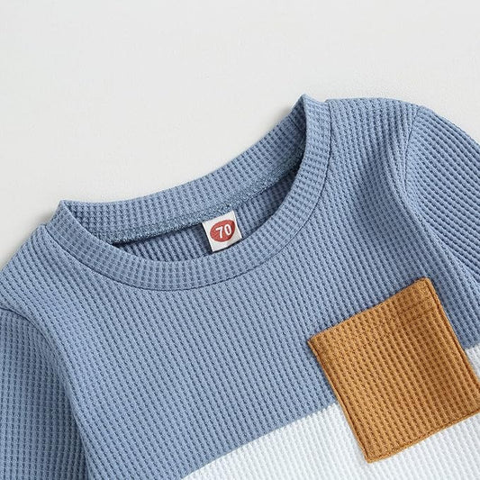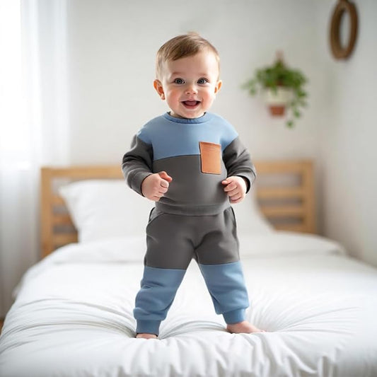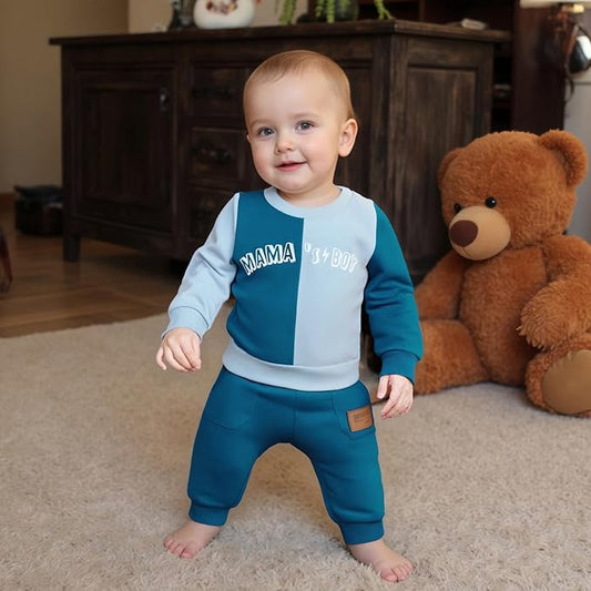 Kupretty Toddler Baby Boy Fall Winter Clothes Color Block Long Sleeve Sweatshirt Pullover Tops + Joggers Pants Outfit Set