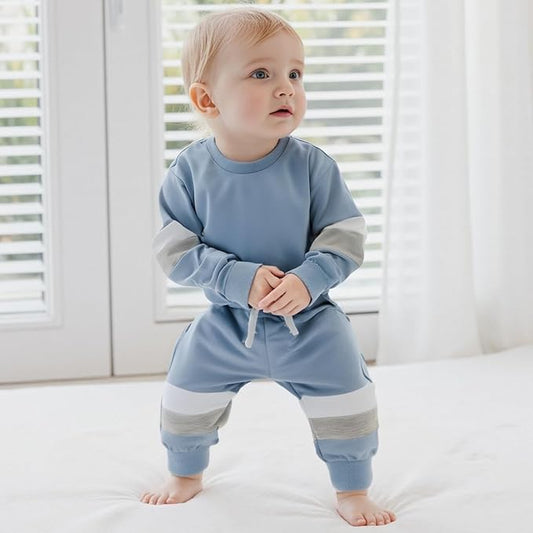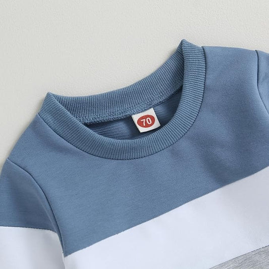 Kupretty Toddler Baby Boy Fall Winter Clothes Color Block Long Sleeve Sweatshirt Pullover Tops + Joggers Pants Outfit Set