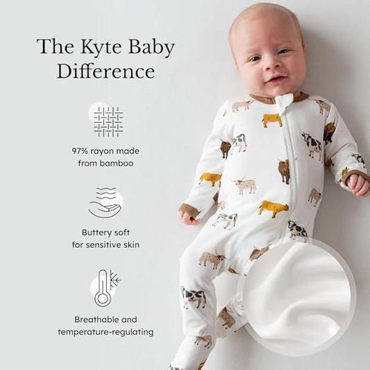 KYTE BABY Unisex Zipper Closure Footies, Rayon Made From Bamboo, 0-24 Months