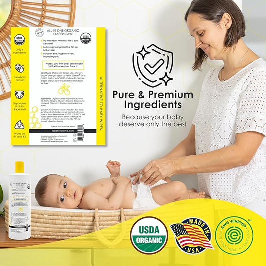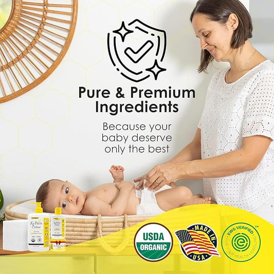La Petite Creme French Premium Diapering Lotion - Diaper Cream Alternative to Baby Wipes - Gentle Moisturizer & Skin Cleanser with USDA Certified Organic Ingredients - Baby Essentials (20 oz)