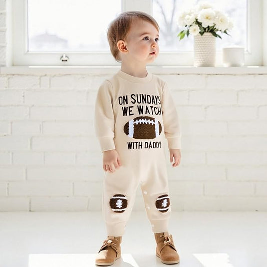 Lamuusaa Newborn Baby Girl Boy Football Outfit On Sundays We Watch Football Romper Long Sleeve Jumpsuit Fall Clothes 0-18M