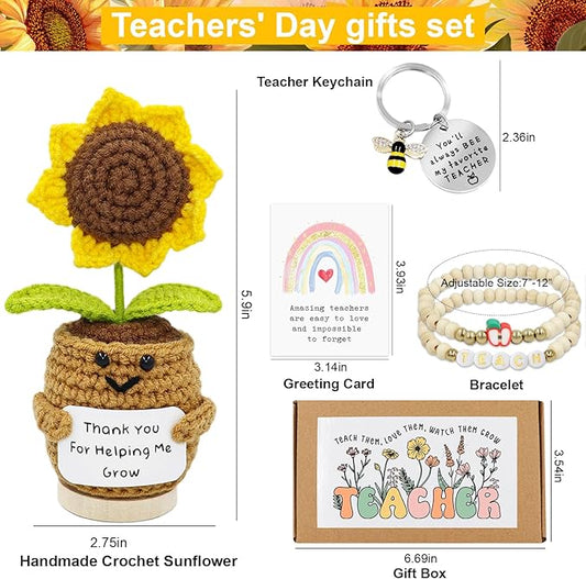 Lamyba Teacher Appreciation Gifts for Women,Handmade Positive Sunflower Crochet Doll, Inspirational Card, Keychains, Bracelet & Gift Box, Christmas/Valentines Day/Thank You Gifts for Teacher