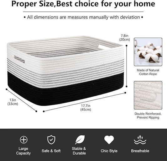 Large Storage Basket for Organizing, Woven Rope Basket for Shelves, Closet Organizer Bins for Clothes, Blanket, Toys, Baby Nursery Storage, 17.7" x 13" x 7.87", 2 Packs Gradient Black