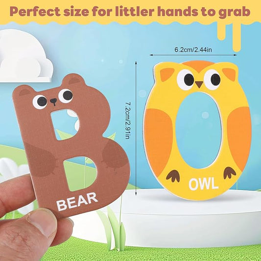 Large Size Magnetic Letters, 26 Cute Animal Alphabet Magnets, Easily Grip Uppercase for Toddlers Letter Recognition and Early Spelling, for Kids Toddlers 3-5 Preschool Spelling Learning