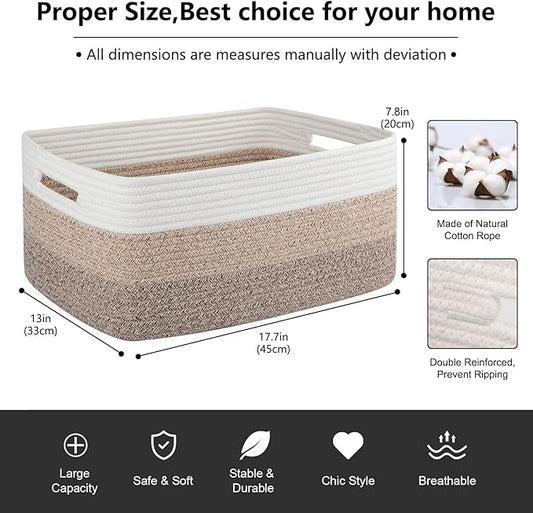 Large Storage Basket for Organizing, Woven Rope Basket for Shelves, Closet Organizer Bins for Clothes, Blanket, Toys, Baby Nursery Storage, 17.7" x 13" x 7.87", 2 Packs Gradient Blue