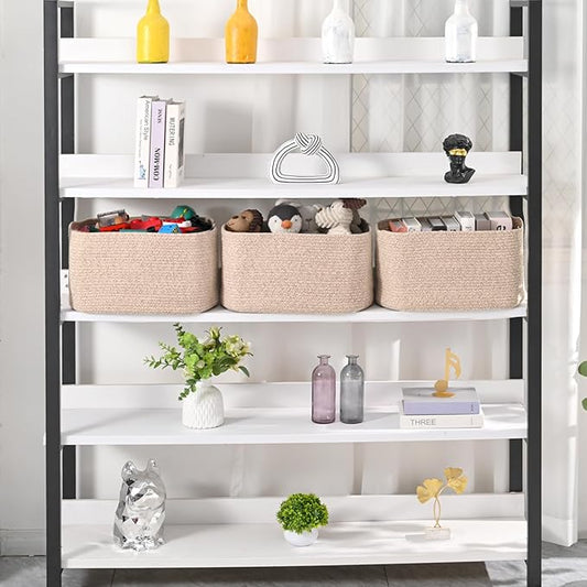Large Storage Baskets for Organizing Shelves, Woven Cotton Rope Bins for Baby Nursery Organization, Book Toy Towel Organizer, 17"x13"x9.5", 3 Packs, Off White & Brown