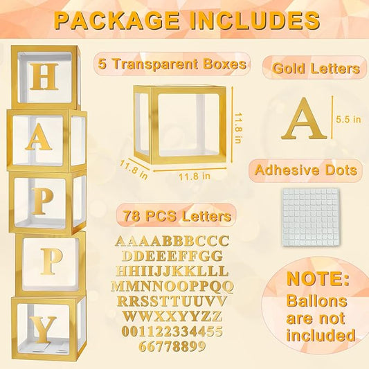 Ledido Gold Transparent Balloon Boxes With 78 Letters, Baby Boxes with Letters for Baby Shower Clear Letter Boxes for Party Graduation Wedding Birthday Baby Shower Decorations 5 PCS