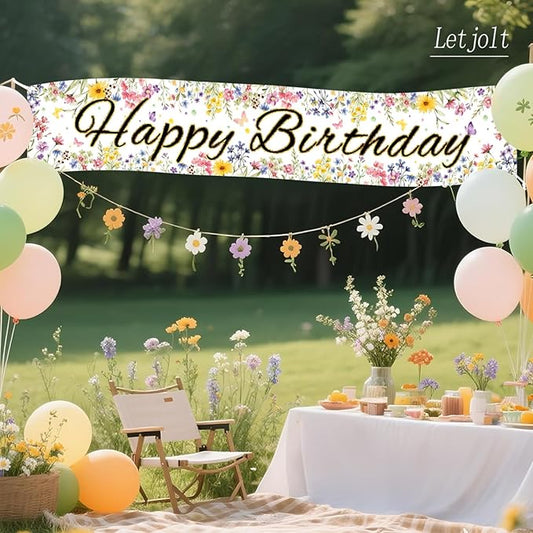 Letjolt Happy Birthday Banner Girls Birthday Party Decorations Wildflower Floral Theme Decor for Nursery Celebration Baby Shower Backdrop 6Ft