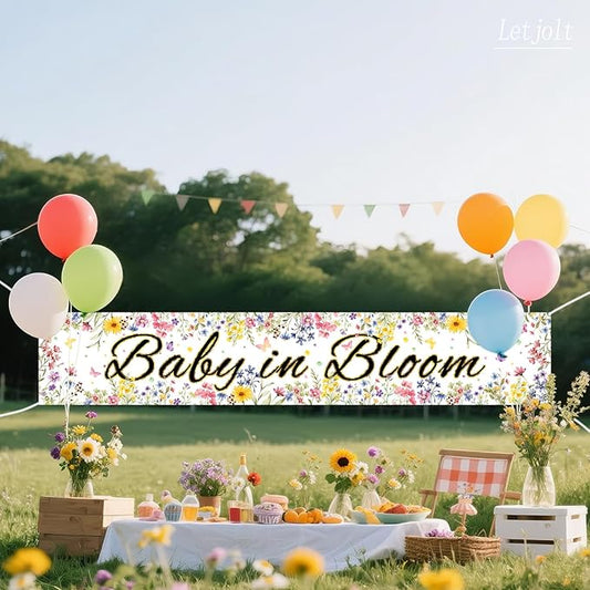 Letjolt Baby in Bloom Baby Shower Banner Wildflower Decorations Floral Theme Girls Party Decor for Nursery Newborn Celebration Backdrop 6Ft