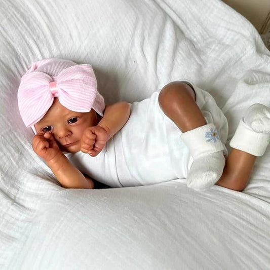 Lifelike Black Girl Reborn Baby Dolls Silicone Baby Doll 18 Inch Realistic African American Reborn Dolls Girl Real Life Dark Brown Skin Newborn Baby Toy with Accessories Toy Gift for Kids